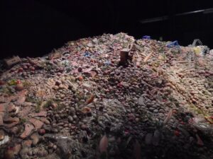 • Une autre installation, l’Homme de Maïs, est consacrée à la plante la plus cultivée au monde. On y explore la nourriture industrielle qui utilise très fréquemment cette céréale, notamment en identifiant sur les étiquettes les noms derrière lesquels elle se cache, et on en apprend plus sur ses origines et les pays qui la cultivent actuellement. La production alimentaire de petite échelle se mobilise désormais contre ce géant, porte-drapeau de l’agriculture industrielle, omniprésent dans les rayons de la grande distribution.